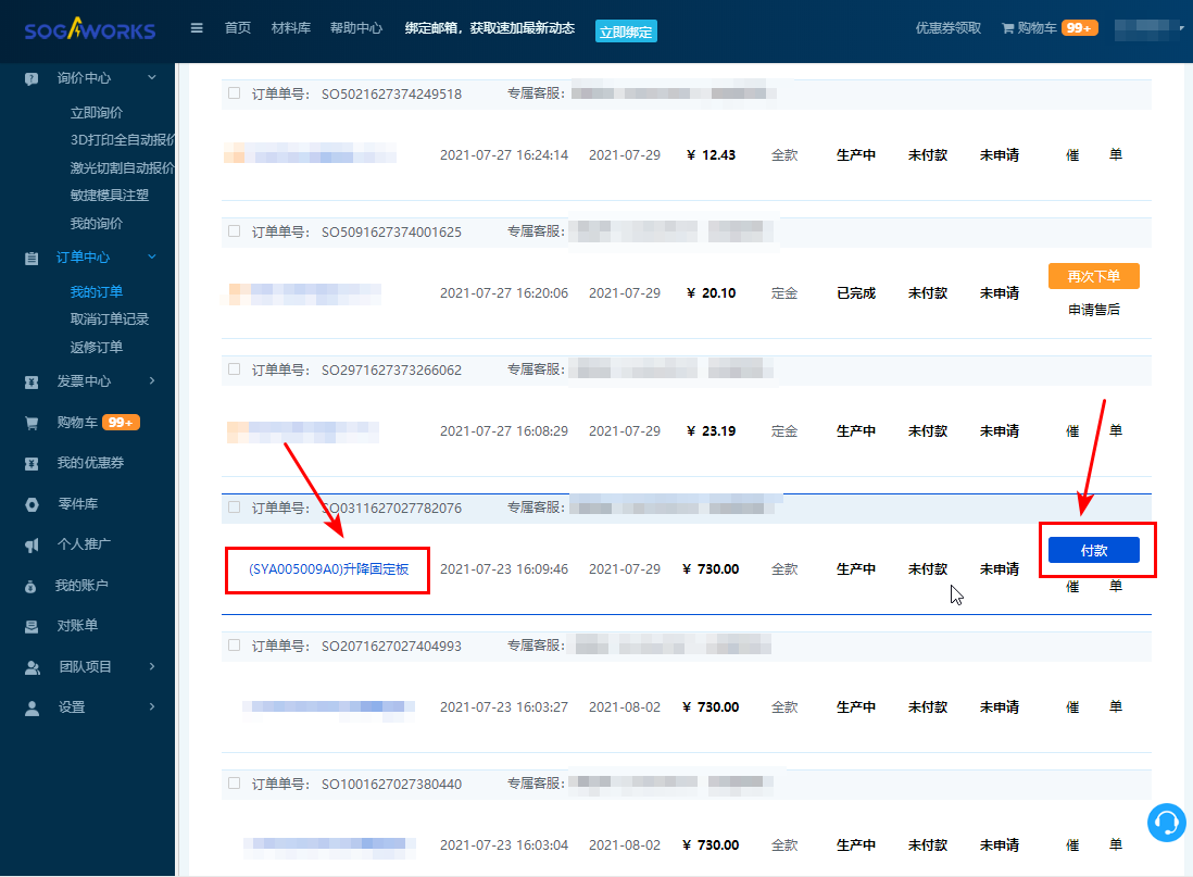 3. 點(diǎn)擊【訂單中心-我的訂單】,進(jìn)入我的訂單頁面