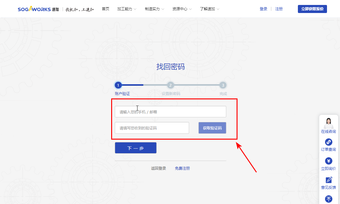 1.1 在登錄界面,輸入賬號,并點擊【忘記密碼】