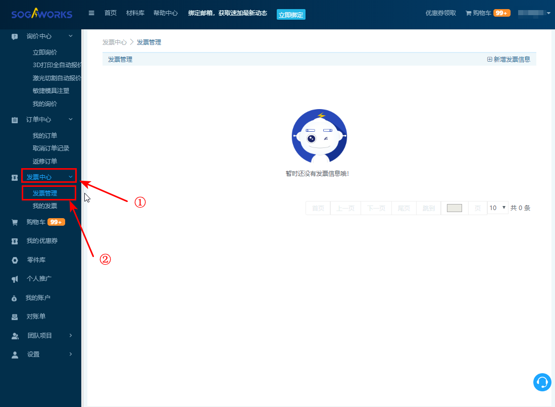 2. 點擊【發(fā)票中心-發(fā)票管理】,進(jìn)行發(fā)票管理頁面