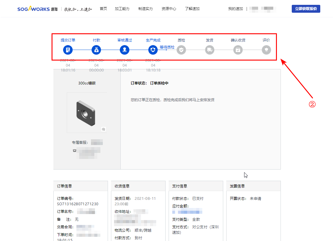 加工進(jìn)度實(shí)時(shí)更新到官網(wǎng)個(gè)人中心和小程序中,您可以登陸查看零件實(shí)時(shí)加工進(jìn)度。