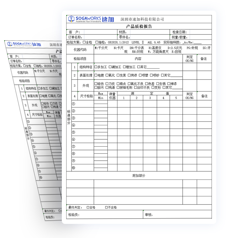 速加設有專業(yè)質檢團隊,確保零件品質;對加工完的零件,發(fā)貨前進行100%全檢。確保滿足您的要求。
